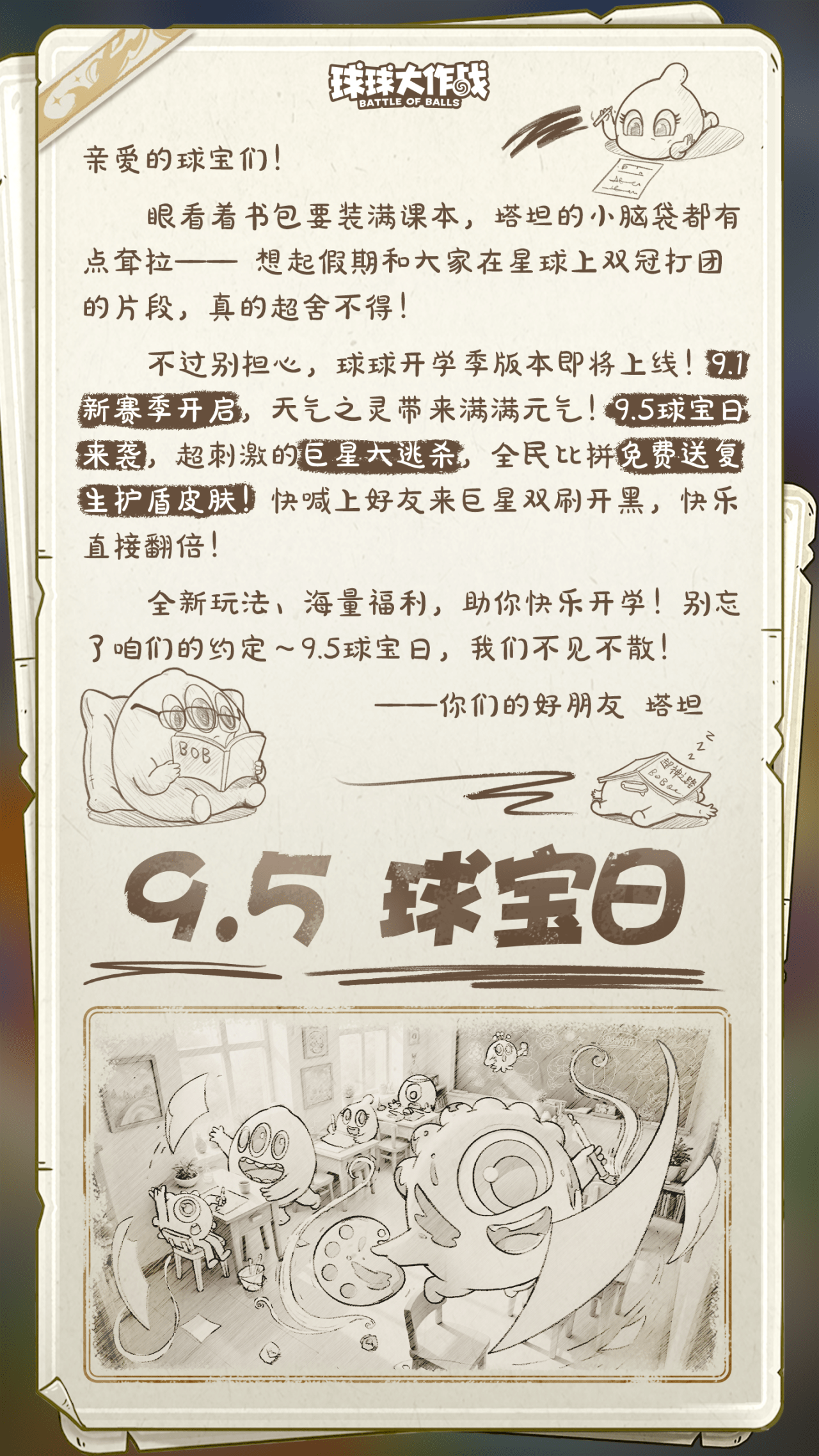 一年一度的球宝日狂欢即将开启!9月1日新赛季率先启航,9月5日球宝日惊喜接档——巨星大逃杀全民赛场火爆来袭,复生护盾皮肤免费领!精彩不容错过,一起来抢先了解~